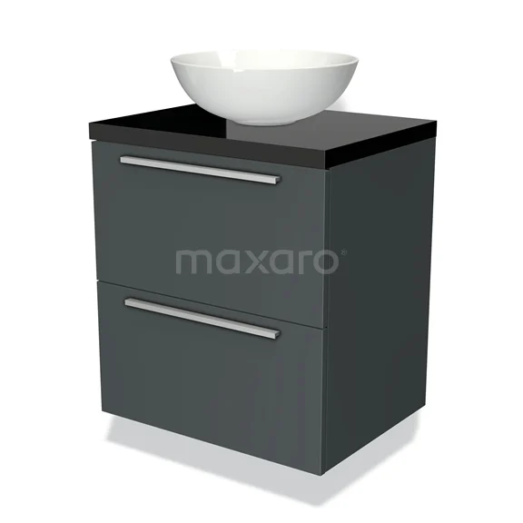 Badmöbel für Waschtischunterschrank mit Konsole 60cm Modulo Plato Dunkelgrau 2 Schubladen Flach Hochglanz Schwarz Platte
