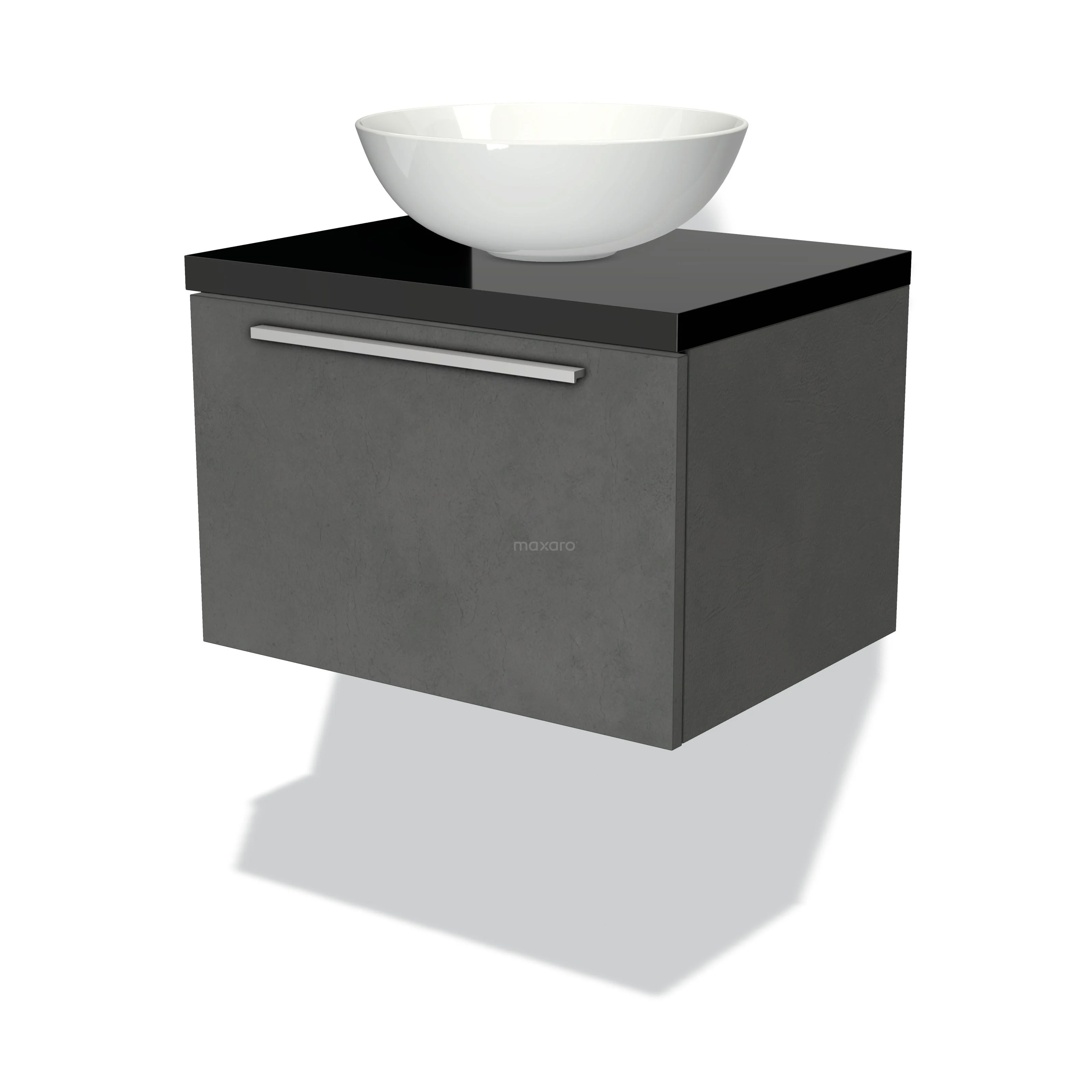Badmöbel für Waschtischunterschrank mit Konsole 60cm Modulo Plato Dunkelgrau Beton 1 Schublade Flach Hochglanz Schwarz Platte