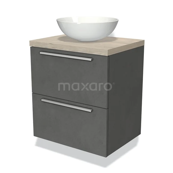 Badmöbel für Waschtischunterschrank mit Konsole 60cm Modulo Plato Dunkelgrauer Beton 2 Schubladen Flach Hellgraue Eiche Platte