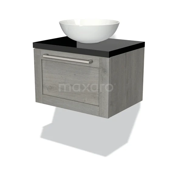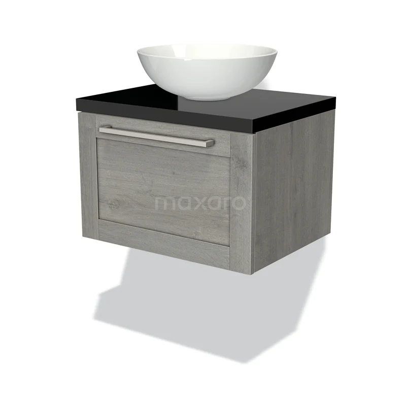 Badmöbel für Waschtischunterschrank mit Konsole 60cm Modulo Plato Grau Eiche 1 Schublade Rahmen Hochglanz Schwarz Platte