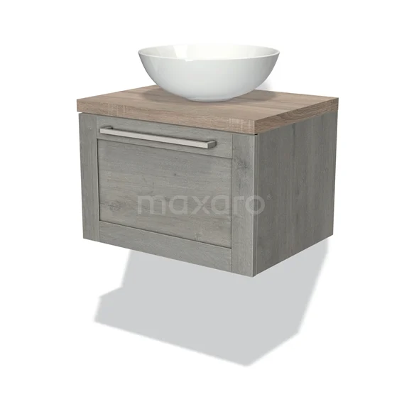 Badmöbel für Waschtischunterschrank mit Konsole 60cm Modulo Plato Grau Eiche 1 Schubladen Rahmen Eiche Platte