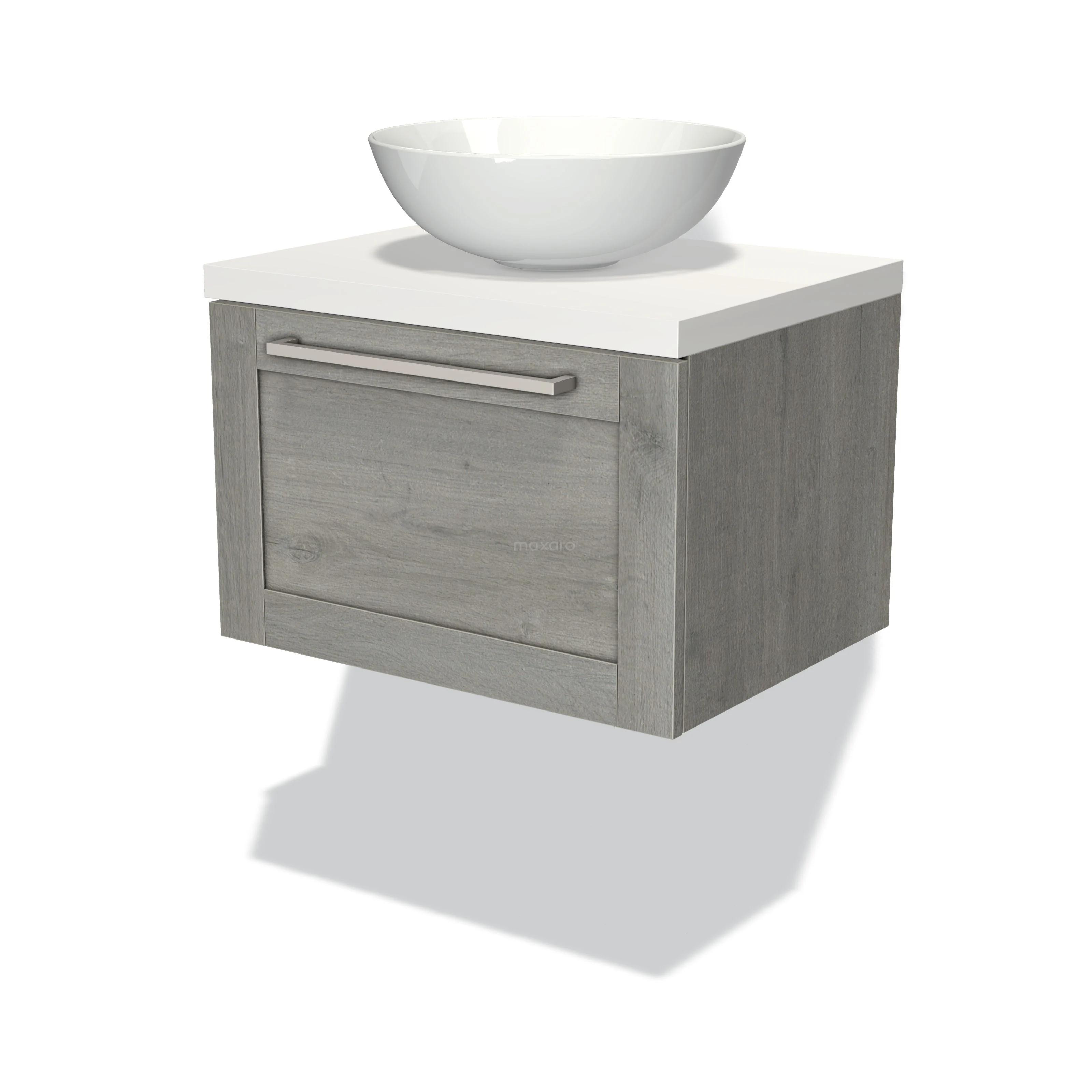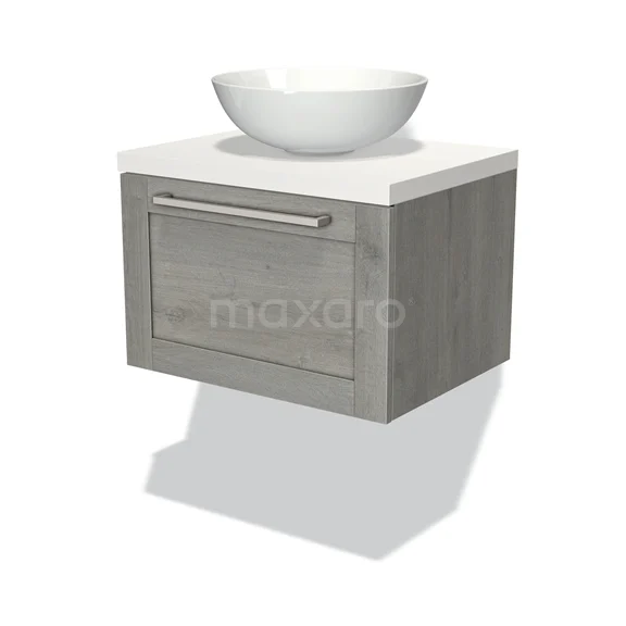 Badmöbel für Waschtischunterschrank mit Konsole 60cm Modulo Plato Graue Eiche 1 Schubladenrahmen Matt Weiß Platte