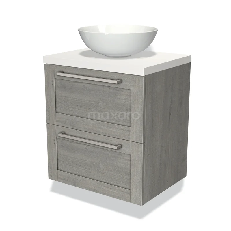 Badmöbel für Waschtischunterschrank mit Konsole 60cm Modulo Plato Graue Eiche 2 Schubladen Rahmen Matt Weiß Platte