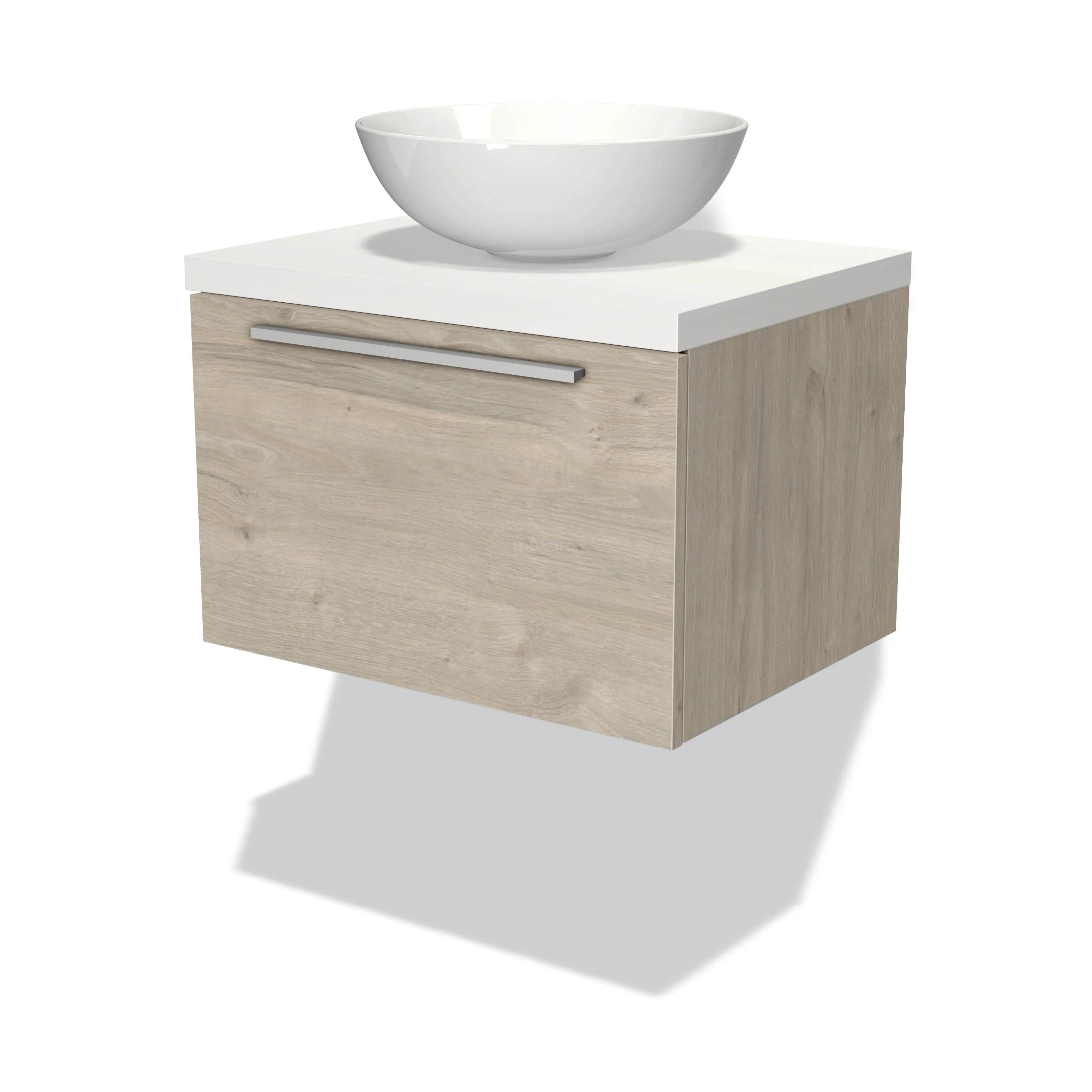 Badmöbel für Waschtischunterschrank mit Konsole 60cm Modulo Plato hellgraue Eiche 1 Schublade flach Matt Weiß Platte
