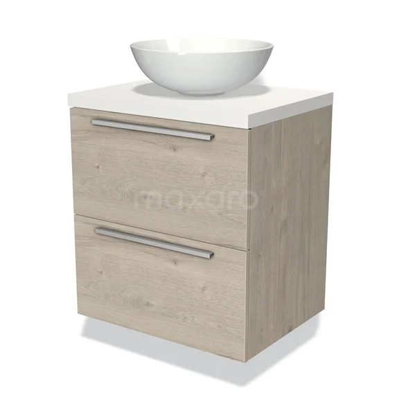 Badmöbel für Waschtischunterschrank mit Konsole 60cm Modulo Plato hellgraue Eiche 2 Schubladen Flach Matt Weiß Platte