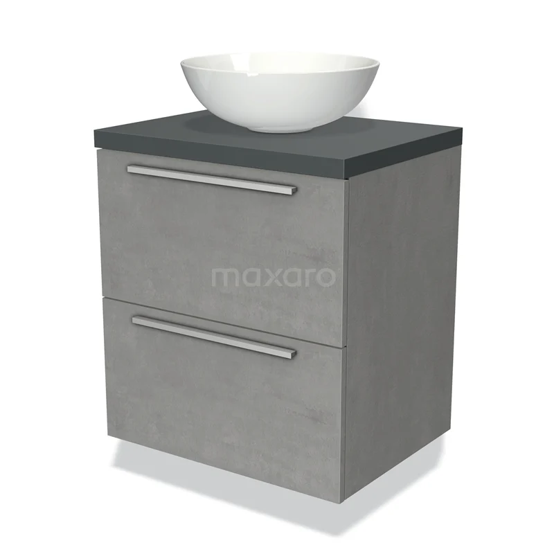 Badmöbel für Waschtischunterschrank mit Konsole 60cm Modulo Plato Hellgrauer Beton 2 Schubladen Flach Dunkelgraue Platte