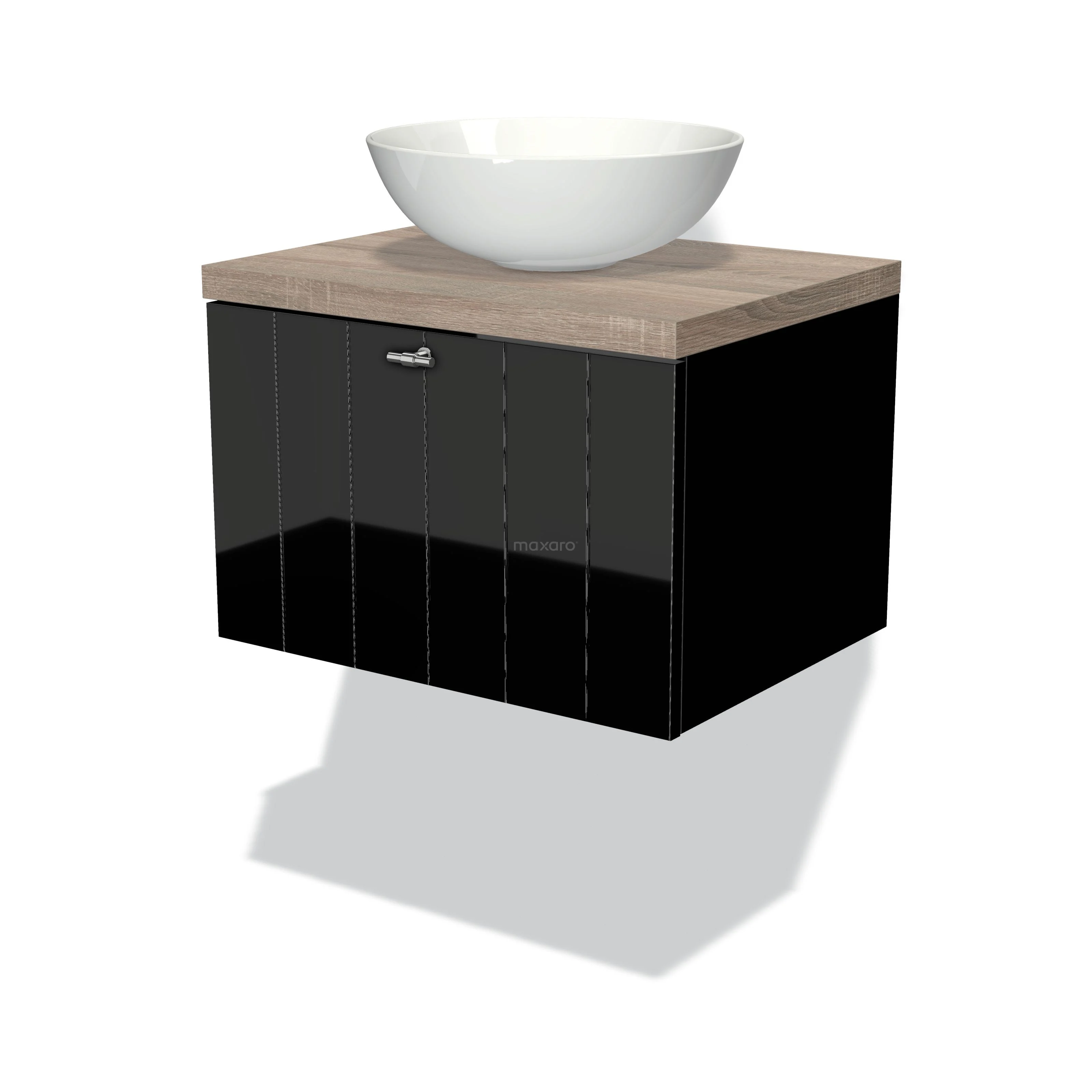 Badmöbel für Waschtischunterschrank mit Konsole 60cm Modulo Plato Hochglanz Schwarz 1 Schublade Lamelle Eiche Platte