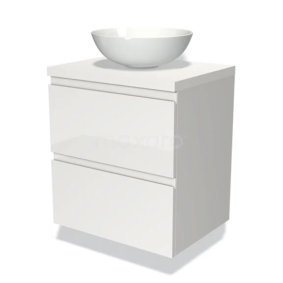 Badmöbel für Waschtischunterschrank mit Konsole 60cm Modulo Plato Hochglanz Weiß 2 Schubladen Grifflos Matt Weiß Platte