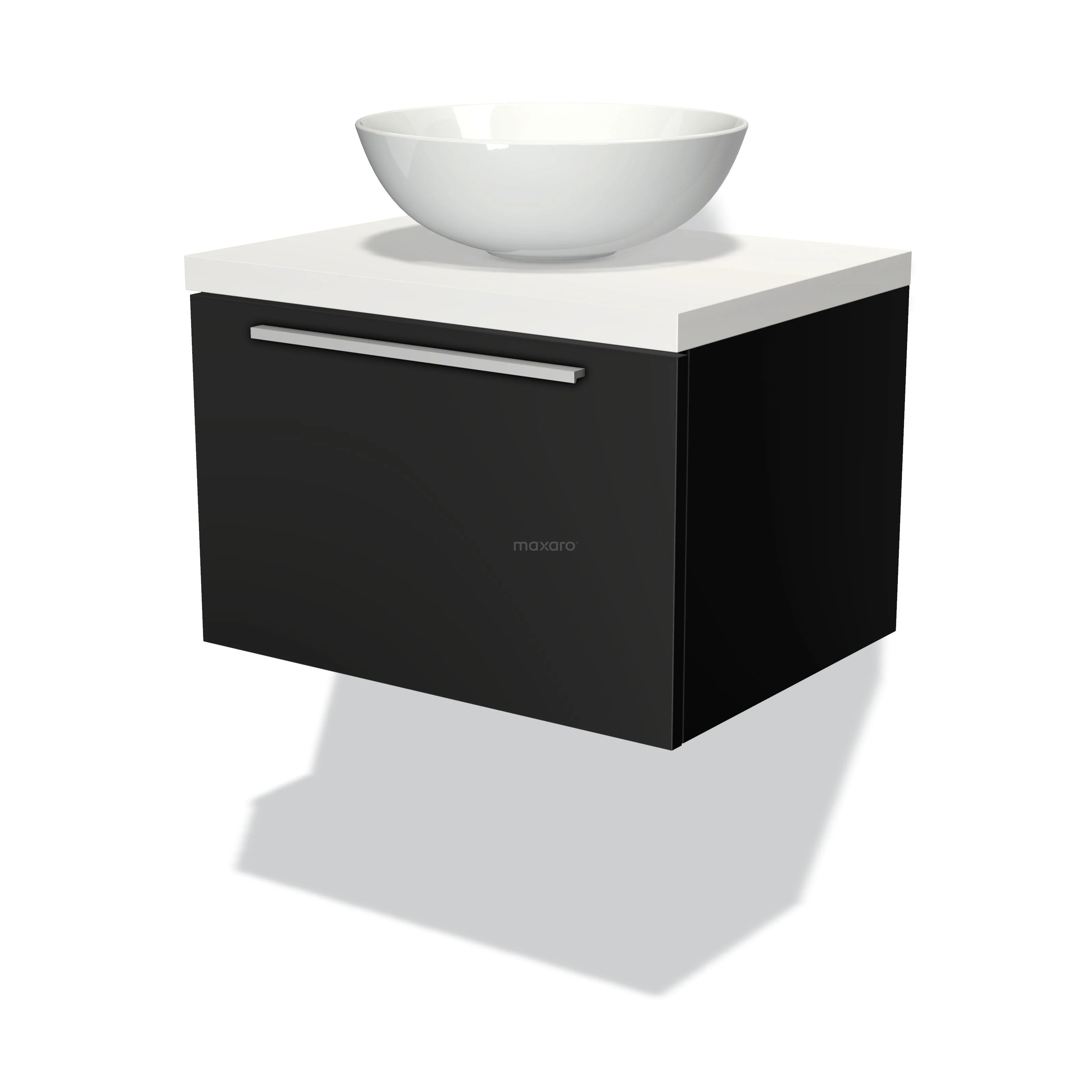Badmöbel für Waschtischunterschrank mit Konsole 60cm Modulo Plato Matt Schwarz 1 Schublade Flach Matt Weiß Platte