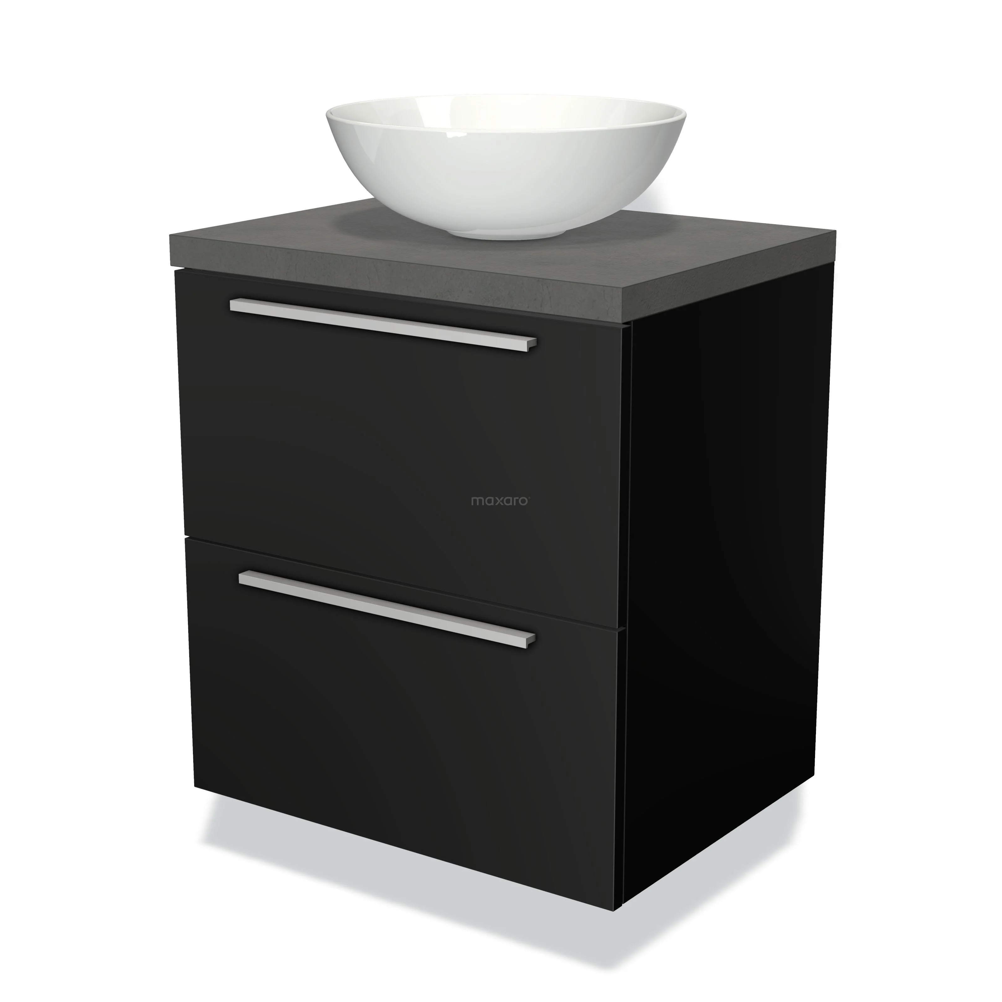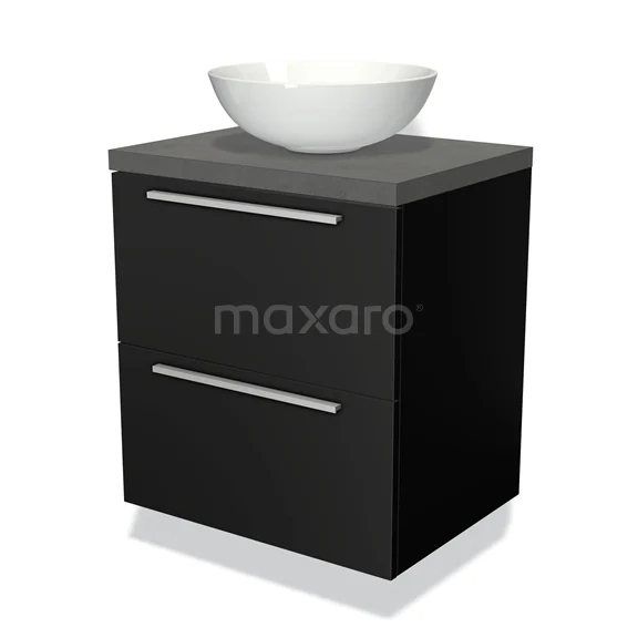 Badmöbel für Waschtischunterschrank mit Konsole 60cm Modulo Plato Matt Schwarz 2 Schubladen Flach Dunkelgrau Beton Platte
