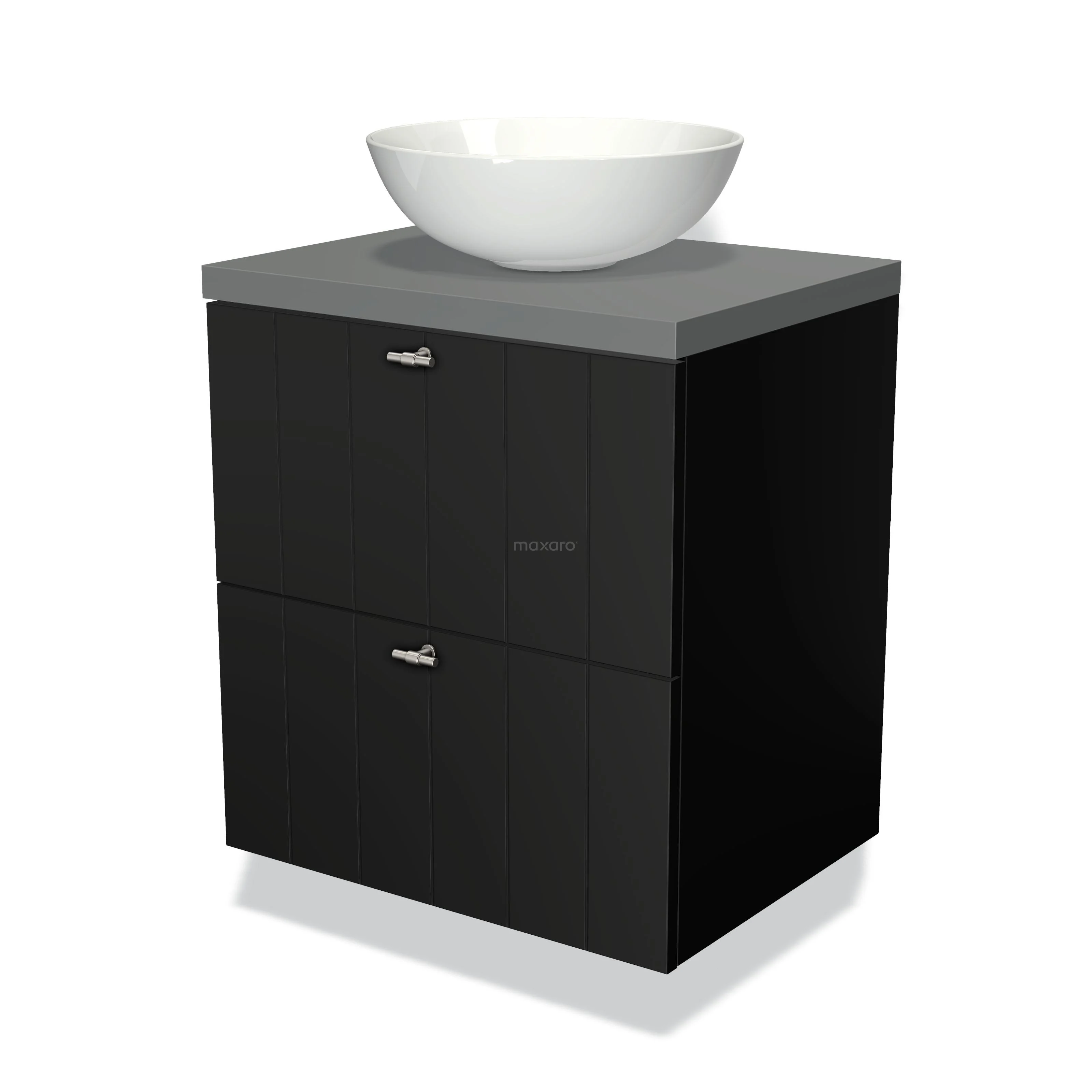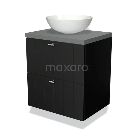 Badmöbel für Waschtischunterschrank mit Konsole 60cm Modulo Plato Matt Schwarz 2 Schubladen Latte Mittelgrau Platte