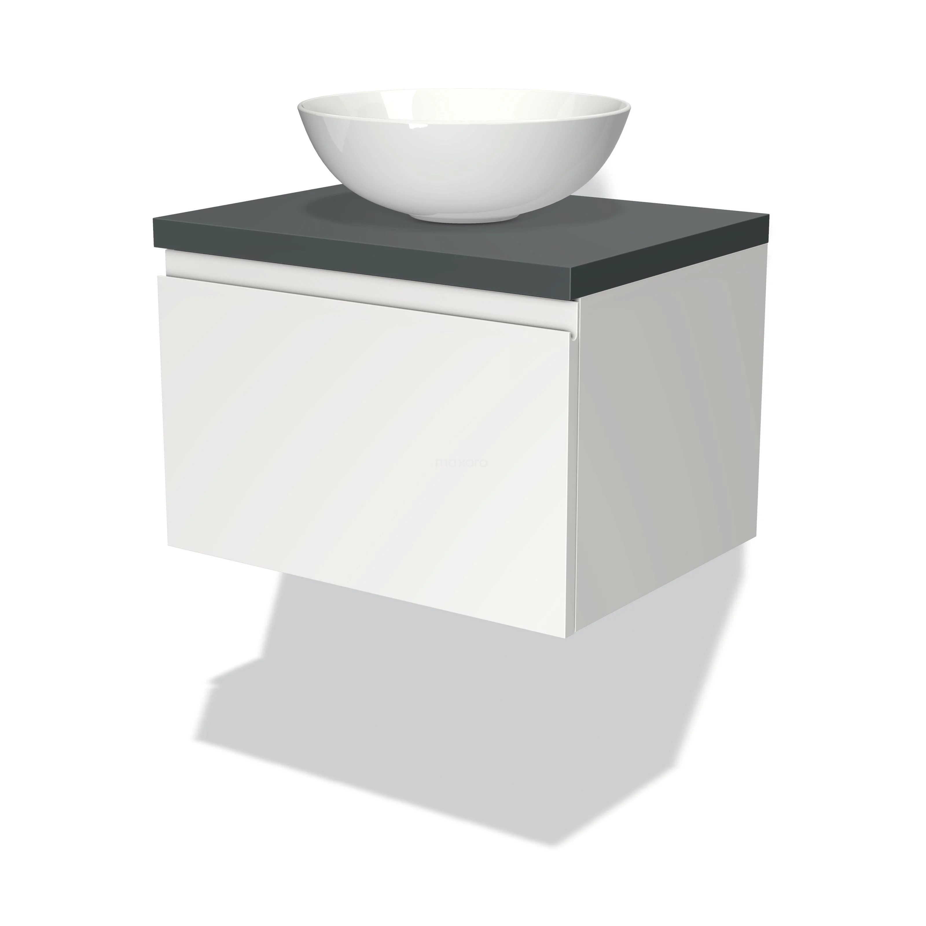 Badmöbel für Waschtischunterschrank mit Konsole 60cm Modulo Plato Matt Weiß 1 Schublade Grifflos Dunkelgrau Platte