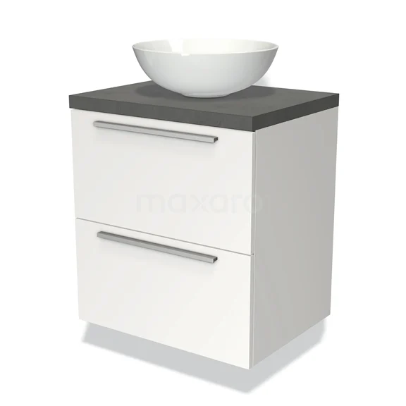 Badmöbel für Waschtischunterschrank mit Konsole 60cm Modulo Plato Matt Weiß 2 Schubladen Flach Dunkelgrau Beton Platte