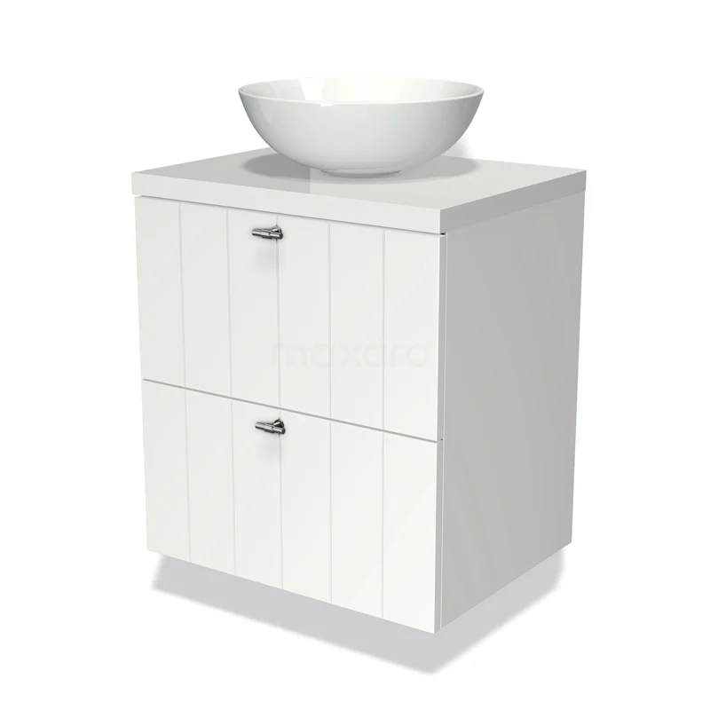 Badmöbel für Waschtischunterschrank mit Konsole 60cm Modulo Plato Matt Weiß 2 Schubladen Lamellen Hochglanz Weiß Platte