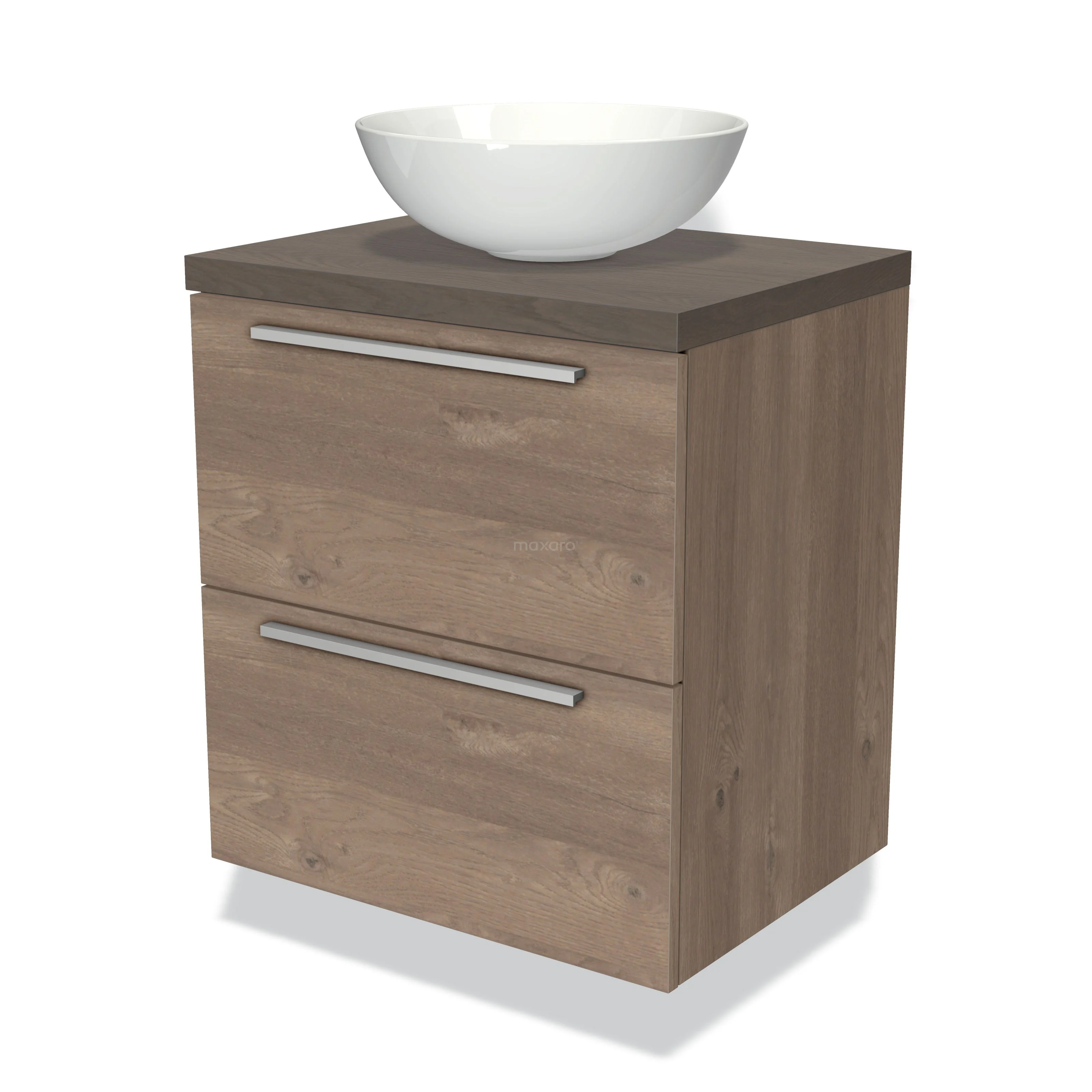 Badmöbel für Waschtischunterschrank mit Konsole 60cm Modulo Plato mittelbraune Eiche 2 Schubladen Flach dunkelbraune Eiche Platte