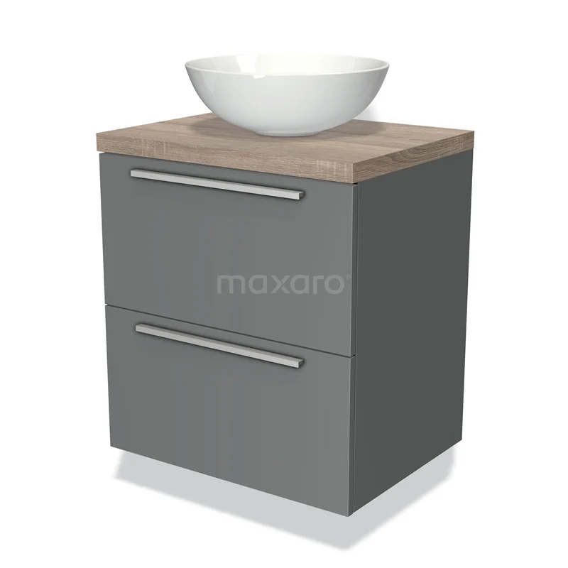 Badmöbel für Waschtischunterschrank mit Konsole 60cm Modulo Plato Mittelgrau 2 Schubladen Flache Platte aus Eiche