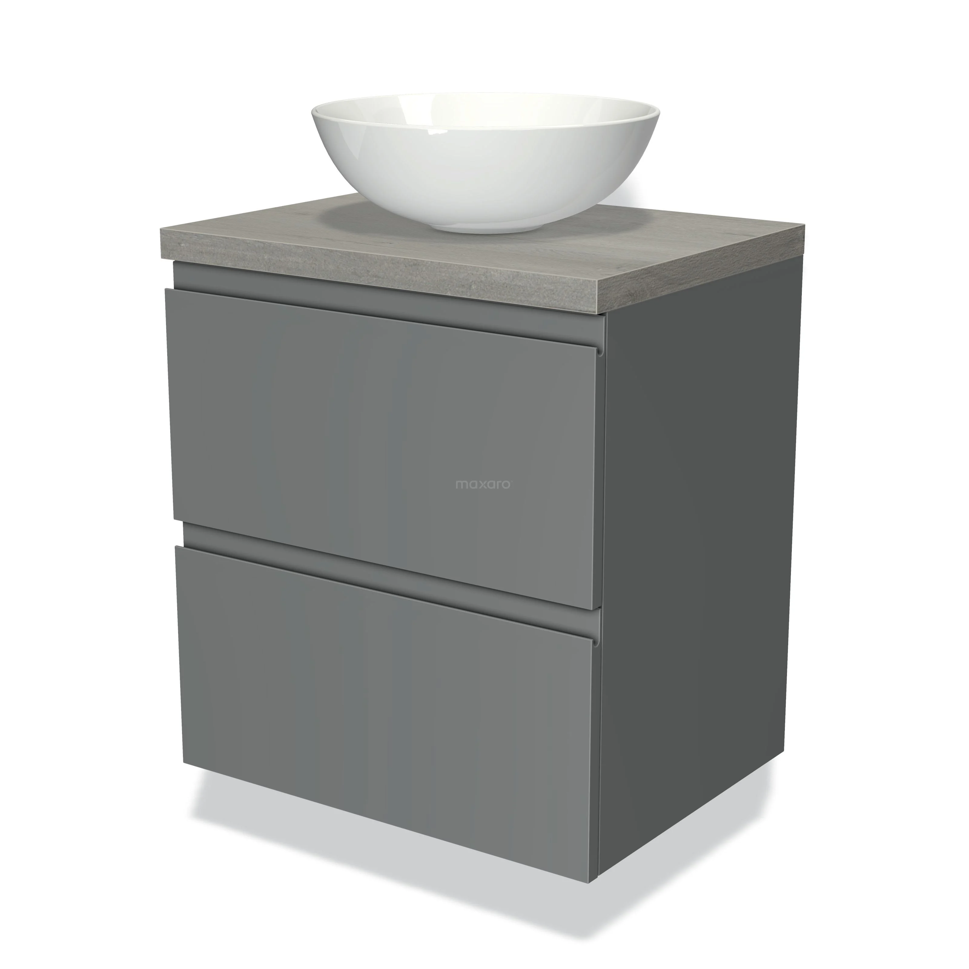 Badmöbel für Waschtischunterschrank mit Konsole 60cm Modulo Plato Mittelgrau 2 Schubladen Grifflos Graue Eiche Platte