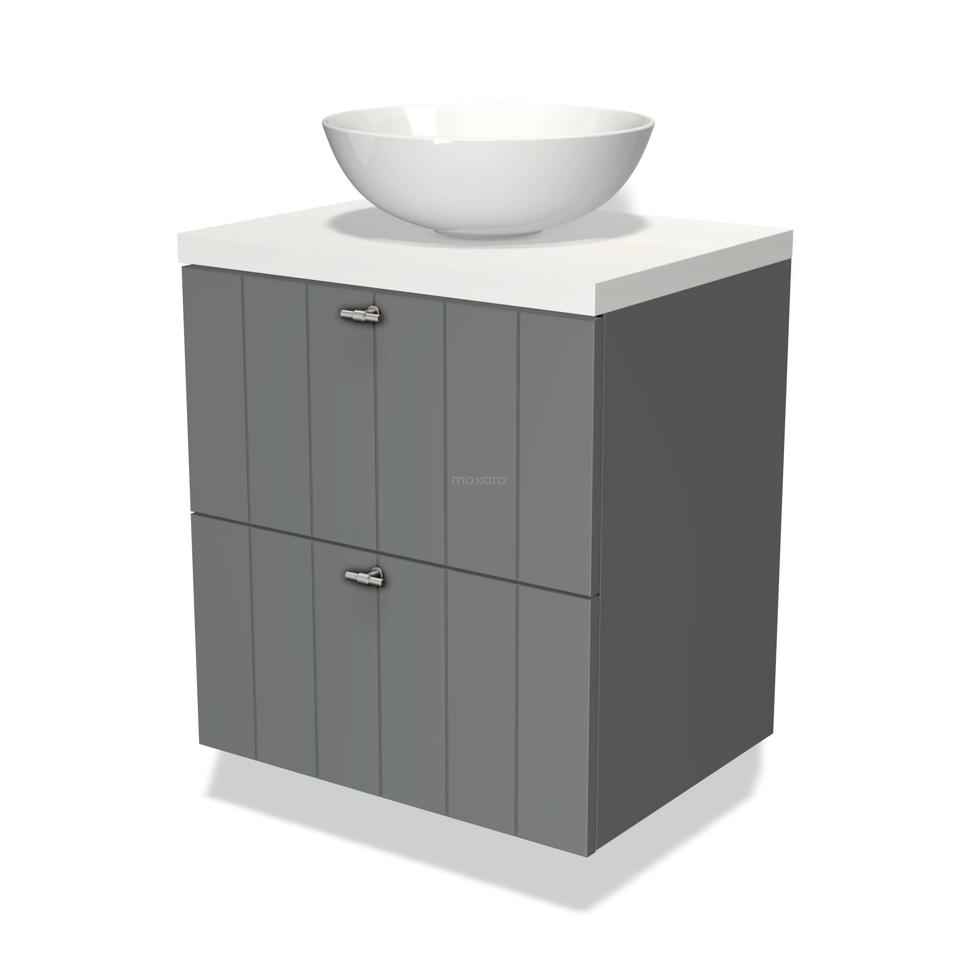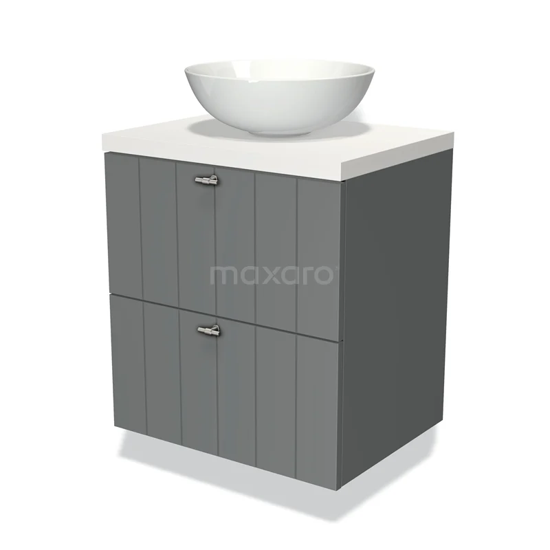 Badmöbel für Waschtischunterschrank mit Konsole 60cm Modulo Plato Mittelgrau 2 Schubladen Latten Matt Weiß Platte