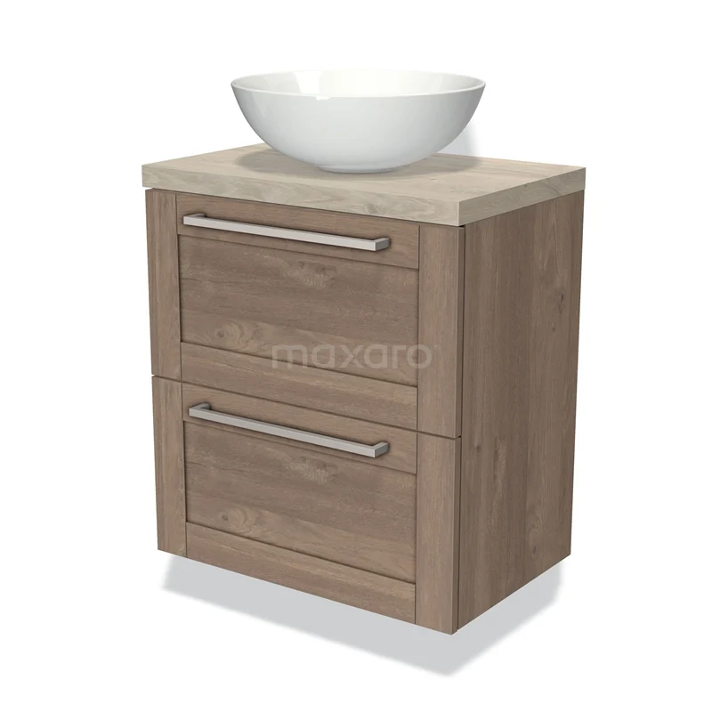 Badmöbel für Waschtischunterschrank mit Konsole 60cm Modulo Plato Slim mittelbraune Eiche 2 Schubladen Rahmen