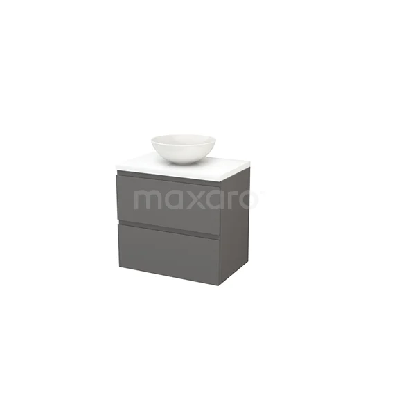 Badmöbel für Waschtischunterschrank mit Konsole 70cm Basalt grifflos Modulo+ Plato Hochglanz Weiß Platte