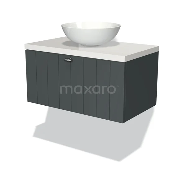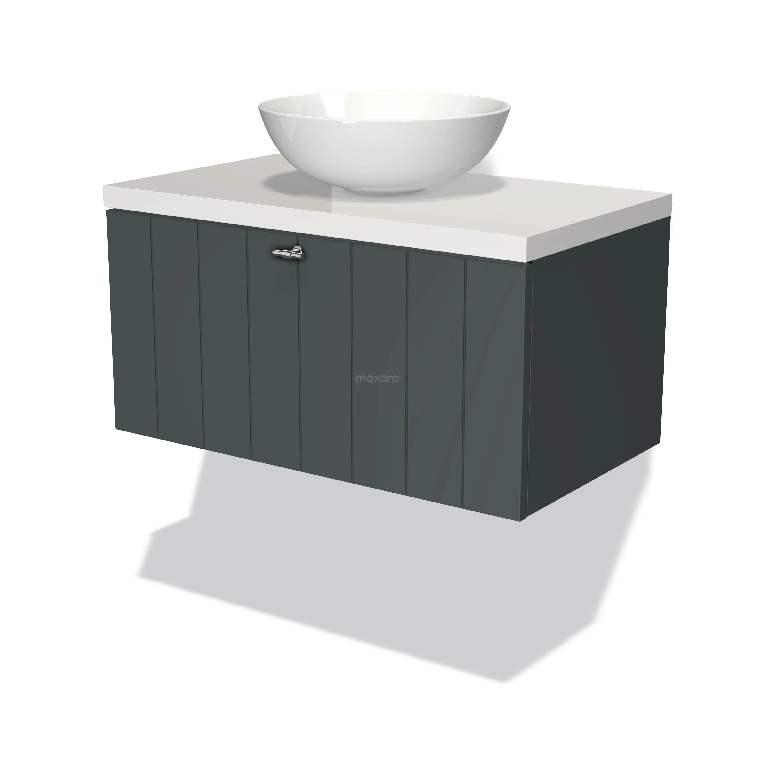 Badmöbel für Waschtischunterschrank mit Konsole 80cm Modulo Plato Dunkelgrau 1 Schublade Lamelle Hochglanz Weiß Platte