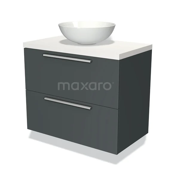 Badmöbel für Waschtischunterschrank mit Konsole 80cm Modulo Plato Dunkelgrau 2 Schubladen Flach Matt Weiß Platte