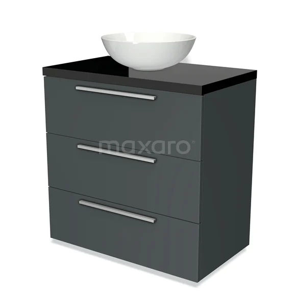 Badmöbel für Waschtischunterschrank mit Konsole 80cm Modulo Plato Dunkelgrau 3 Schubladen Flach Hochglanz Schwarz Platte