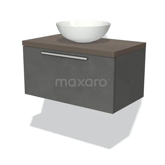 Badmöbel für Waschtischunterschrank mit Konsole 80cm Modulo Plato Dunkelgrauer Beton 1 Schublade Flach Dunkelbraune Eiche Platte