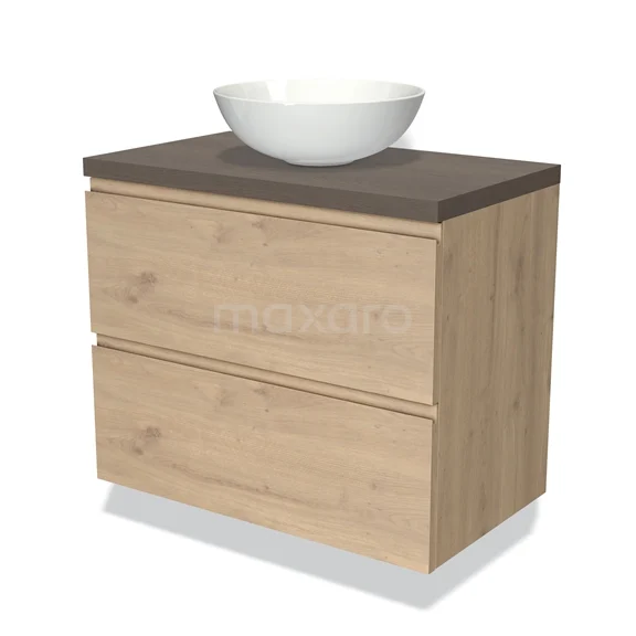 Badmöbel für Waschtischunterschrank mit Konsole 80cm Modulo Plato hellbraune Eiche 2 Schubladen grifflos dunkelbraune Eiche Platte