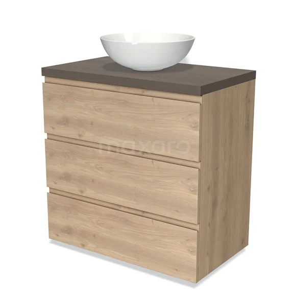 Badmöbel für Waschtischunterschrank mit Konsole 80cm Modulo Plato hellbraune Eiche 3 Schubladen grifflos dunkelbraune Eiche Platte