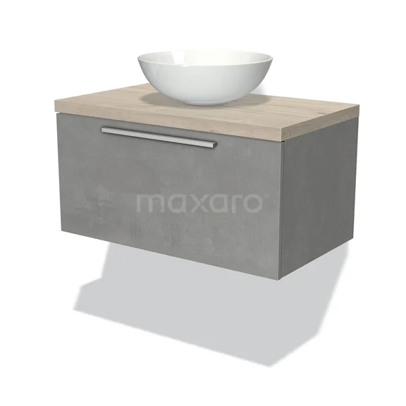 Badmöbel für Waschtischunterschrank mit Konsole 80cm Modulo Plato hellgrauer Beton 1 Schublade Flach hellgraue Eiche Platte