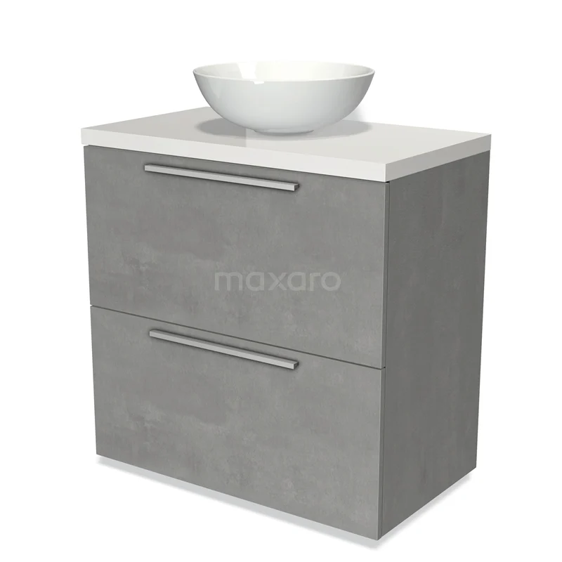 Badmöbel für Waschtischunterschrank mit Konsole 80cm Modulo Plato hellgrauer Beton 2 hohe Schubladen Flach Hochglanz Weiß Platte