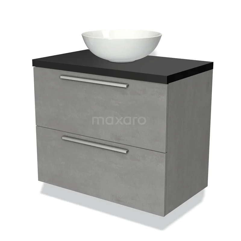 Badmöbel für Waschtischunterschrank mit Konsole 80cm Modulo Plato hellgrauer Beton 2 Schubladen Flach Matt Schwarz Platte