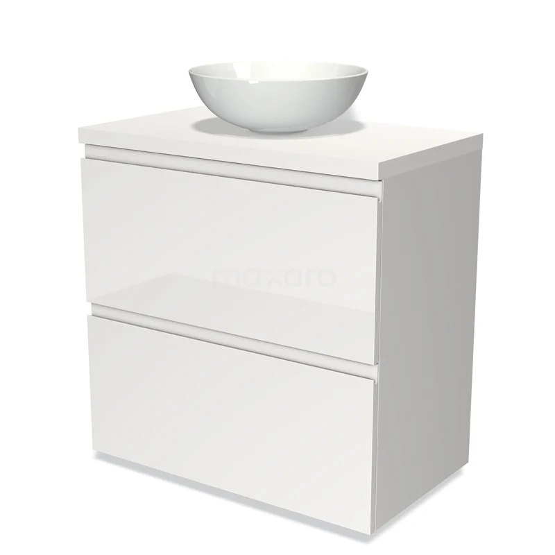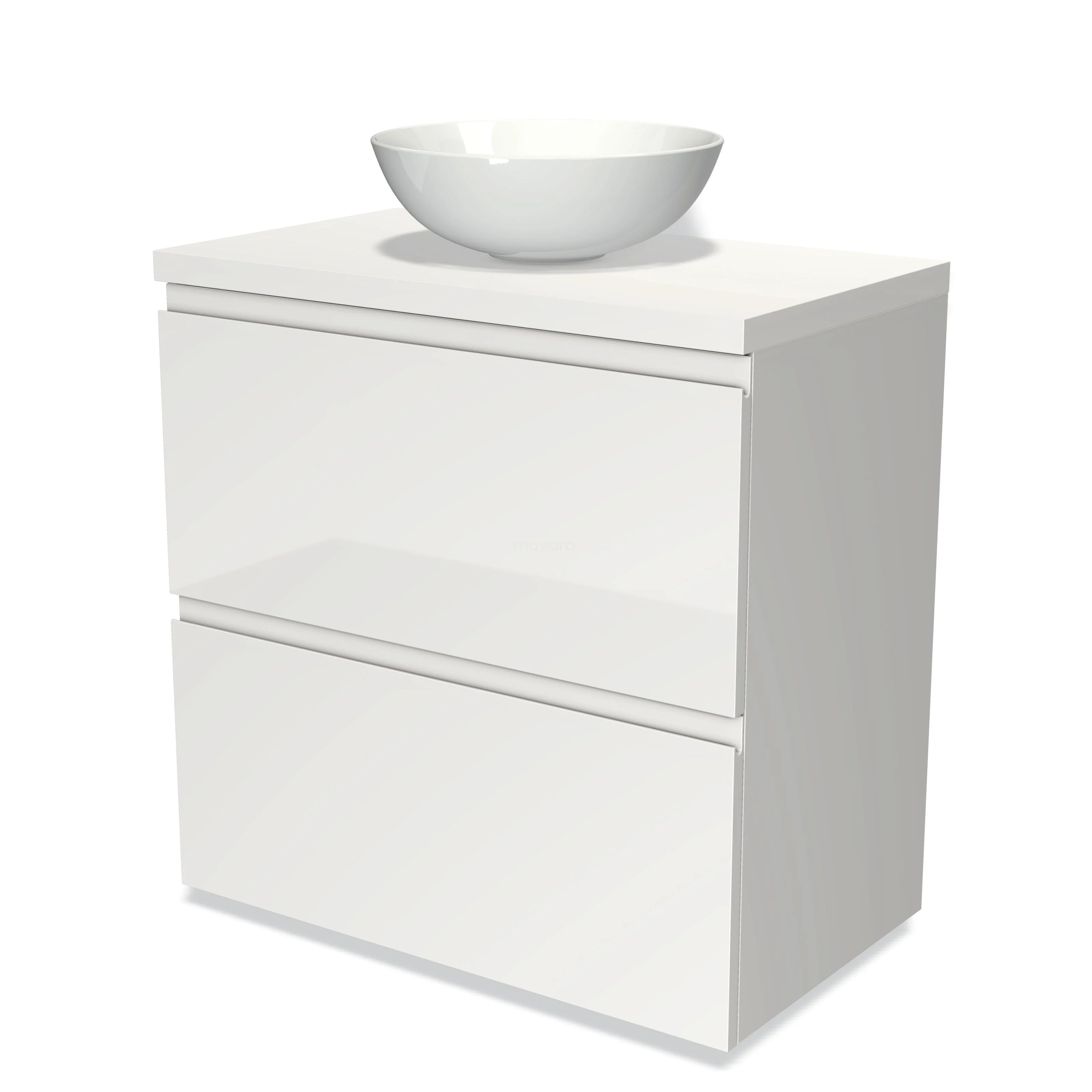 Badmöbel für Waschtischunterschrank mit Konsole 80cm Modulo Plato Hochglanz Weiß 2 hohe Schubladen Grifflos Matt Weiß Platte