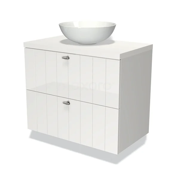 Badmöbel für Waschtischunterschrank mit Konsole 80cm Modulo Plato Hochglanz Weiß 2 Schubladen Latten Matt Weiß Platte