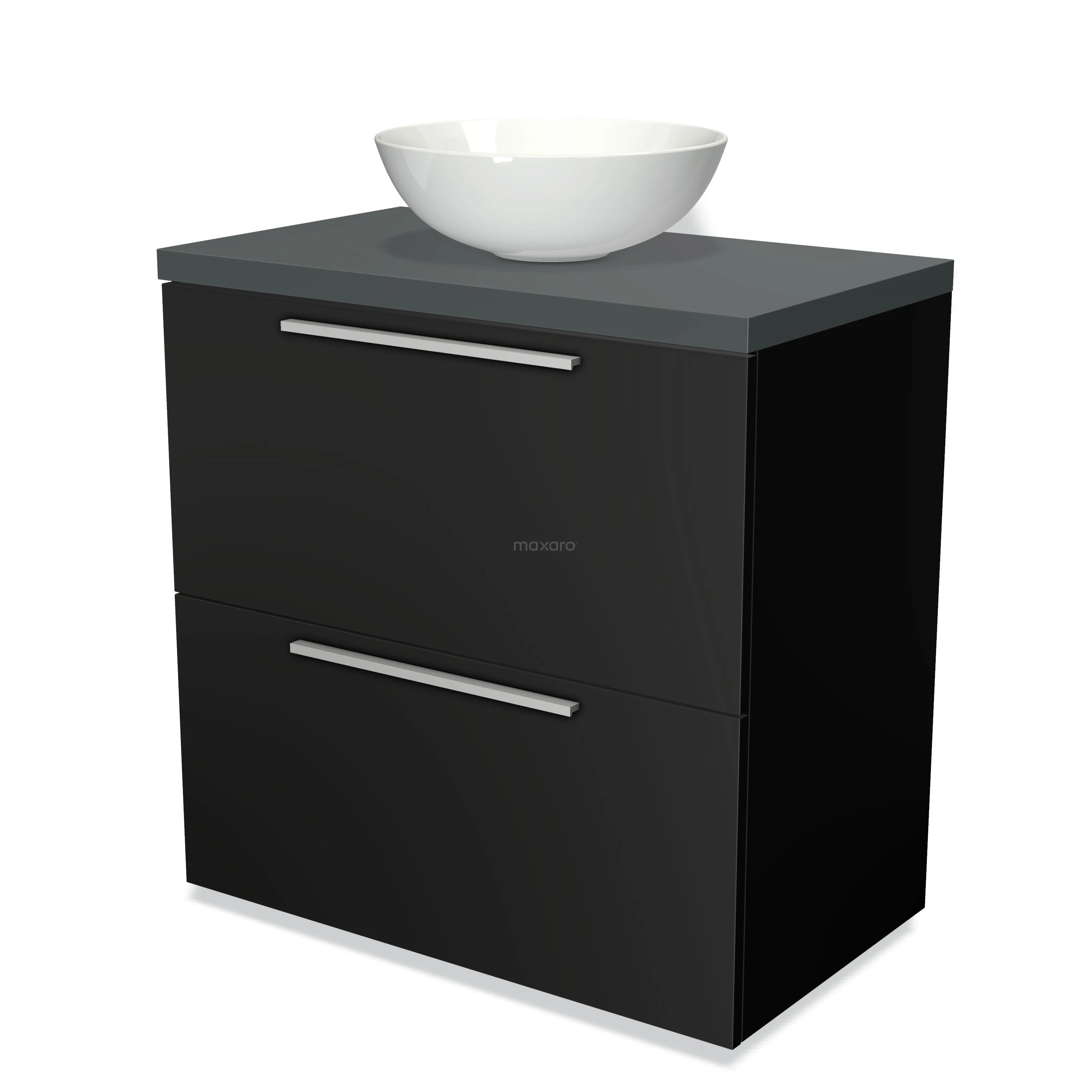 Badmöbel für Waschtischunterschrank mit Konsole 80cm Modulo Plato Matt Schwarz 2 hohe Schubladen Flach Dunkelgrau Platte