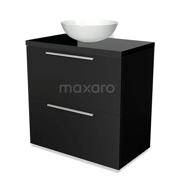 Badmöbel für Waschtischunterschrank mit Konsole 80cm Modulo Plato Matt Schwarz 2 hohe Schubladen Flach Hochglanz Schwarz Platte