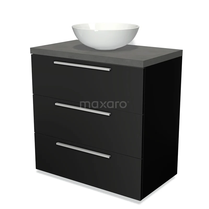 Badmöbel für Waschtischunterschrank mit Konsole 80cm Modulo Plato Matt Schwarz 3 Schubladen Flach Dunkelgrau Beton Platte