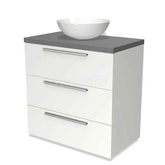 Badmöbel für Waschtischunterschrank mit Konsole 80cm Modulo Plato Matt Weiß 3 Schubladen Flach Mittelgrau Platte