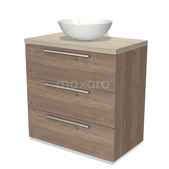 Badmöbel für Waschtischunterschrank mit Konsole 80cm Modulo Plato mittelbraune Eiche 3 Schubladen Flach hellgraue Eiche Platte