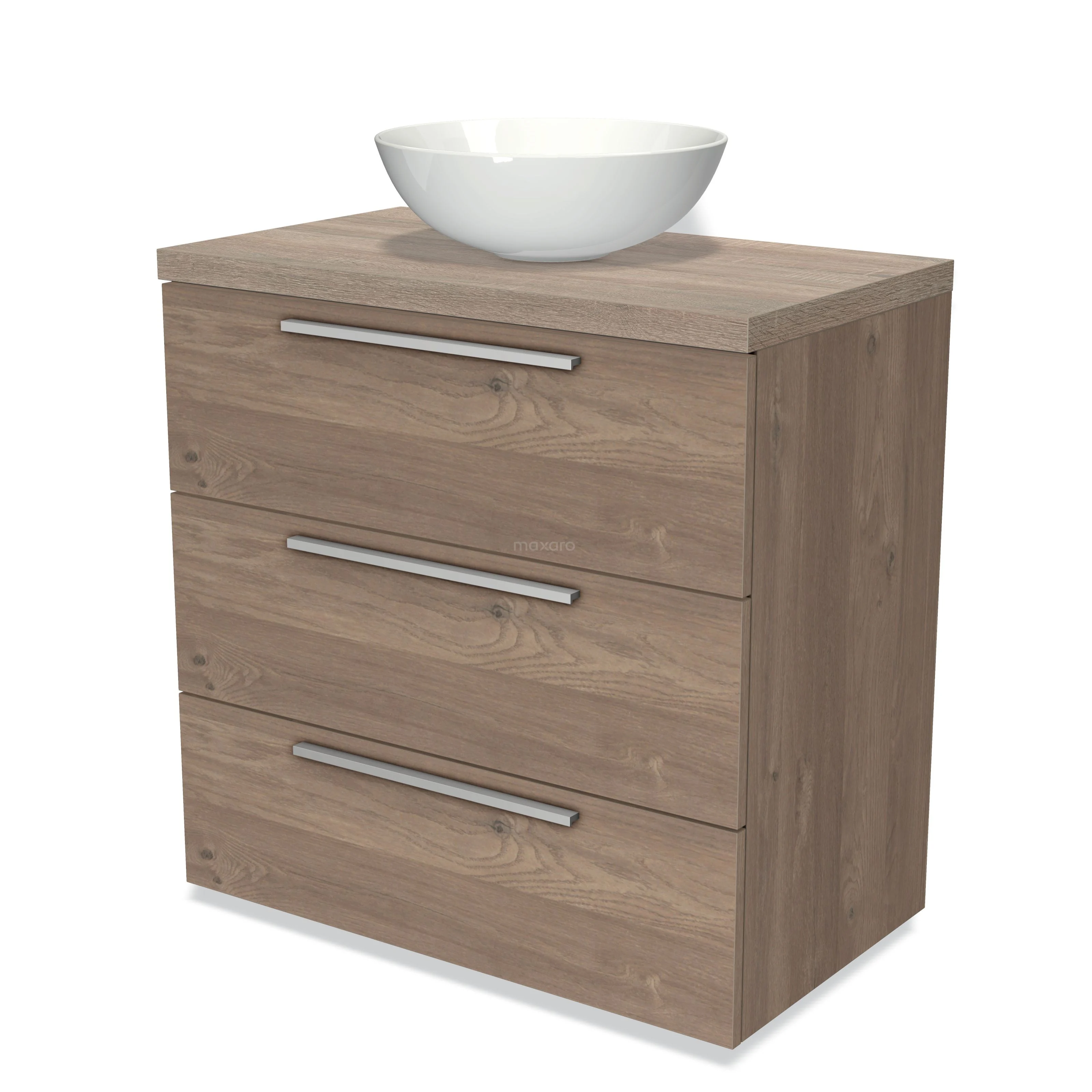 Badmöbel für Waschtischunterschrank mit Konsole 80cm Modulo Plato mittelbraune Eiche 3 Schubladen Flache Platte aus Eiche