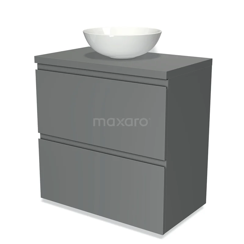 Badmöbel für Waschtischunterschrank mit Konsole 80cm Modulo Plato Mittelgrau 2 hohe Schubladen grifflos