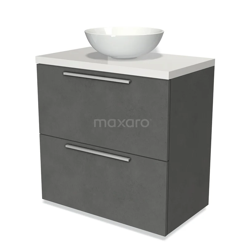 Badmöbel für Waschtischunterschrank mit Konsole 80cm Modulo Platte Dunkelgrau Beton 2 hohe Schubladen Flach Hochglanz Weiß Platte