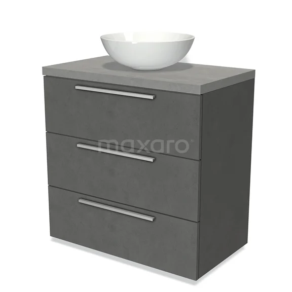 Badmöbel für Waschtischunterschrank mit Konsole 80cm Modulo Platte Dunkelgrau Beton 3 Schubladen Flach Hellgrauer Beton Platte