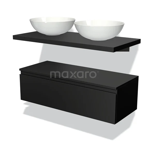 Badmöbel mit Konsole 100 cm Modulo Plato Matt Schwarz 1 Schublade grifflos