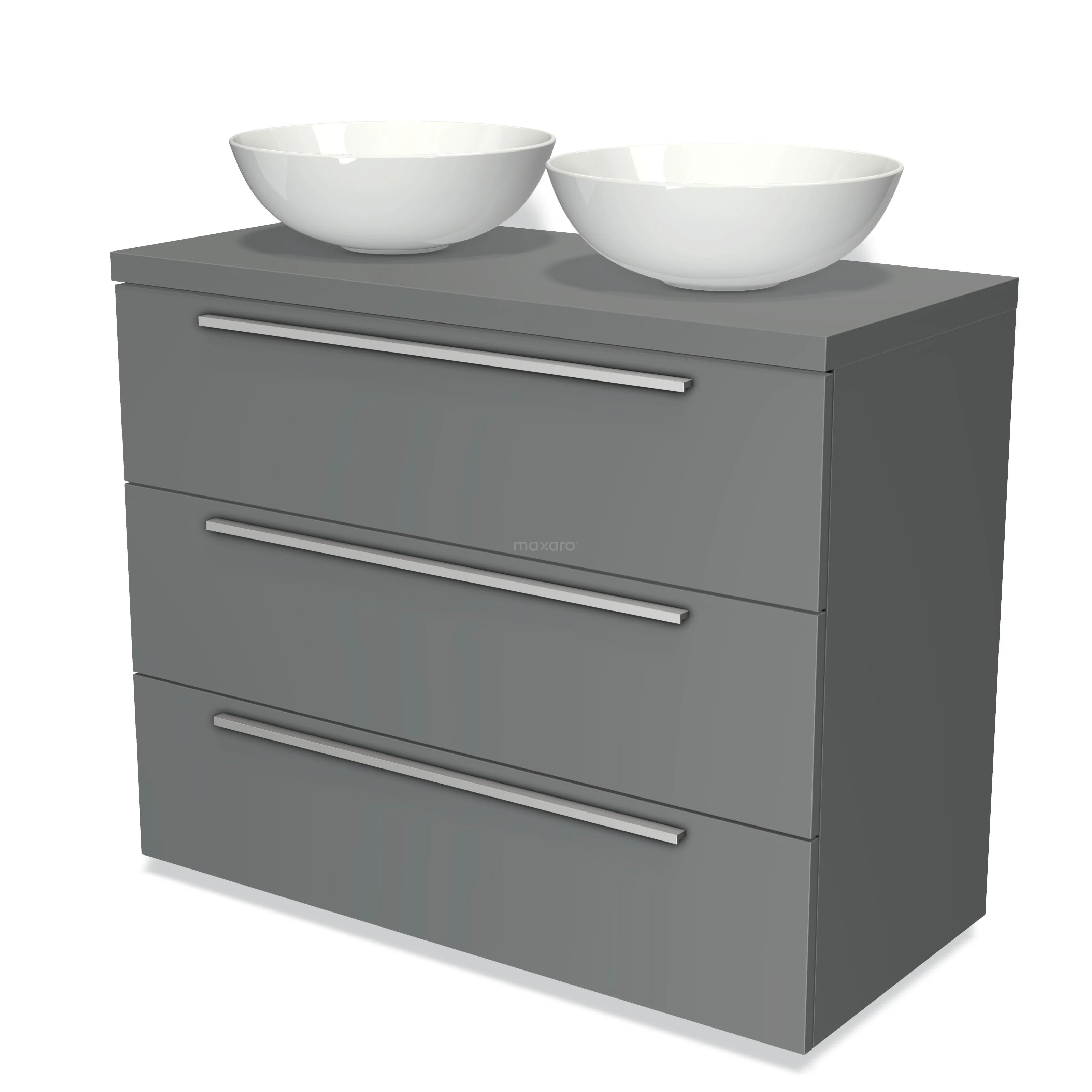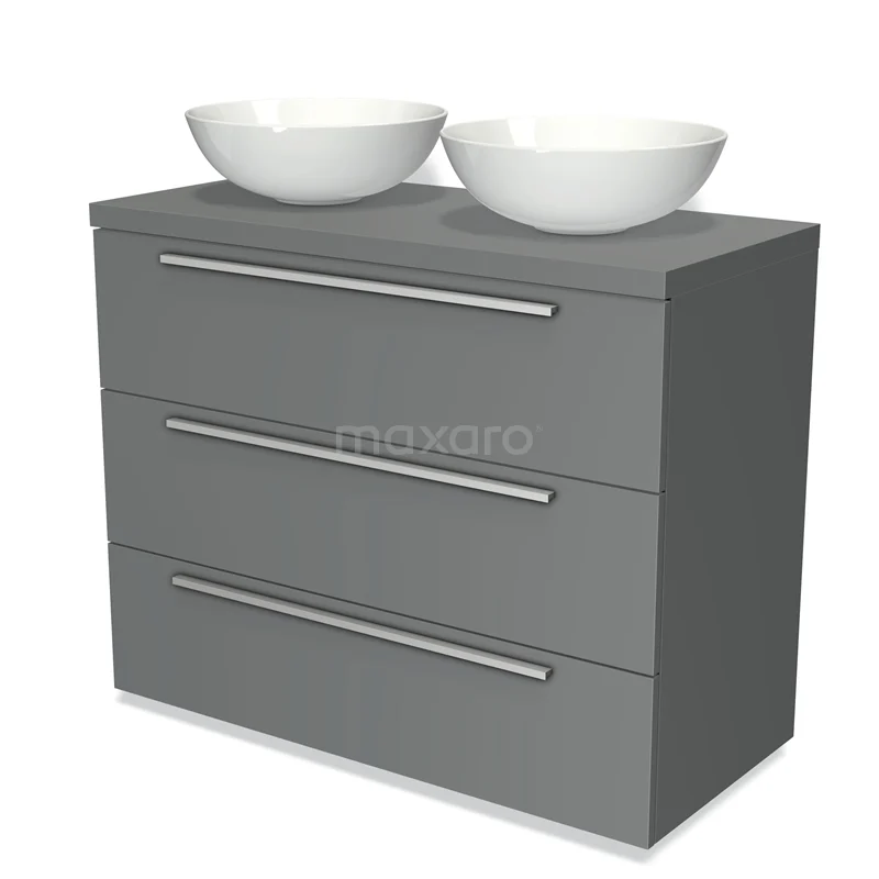 Badmöbel mit Konsole 100cm Modulo Plato Mittelgrau 3 Schubladen Flach