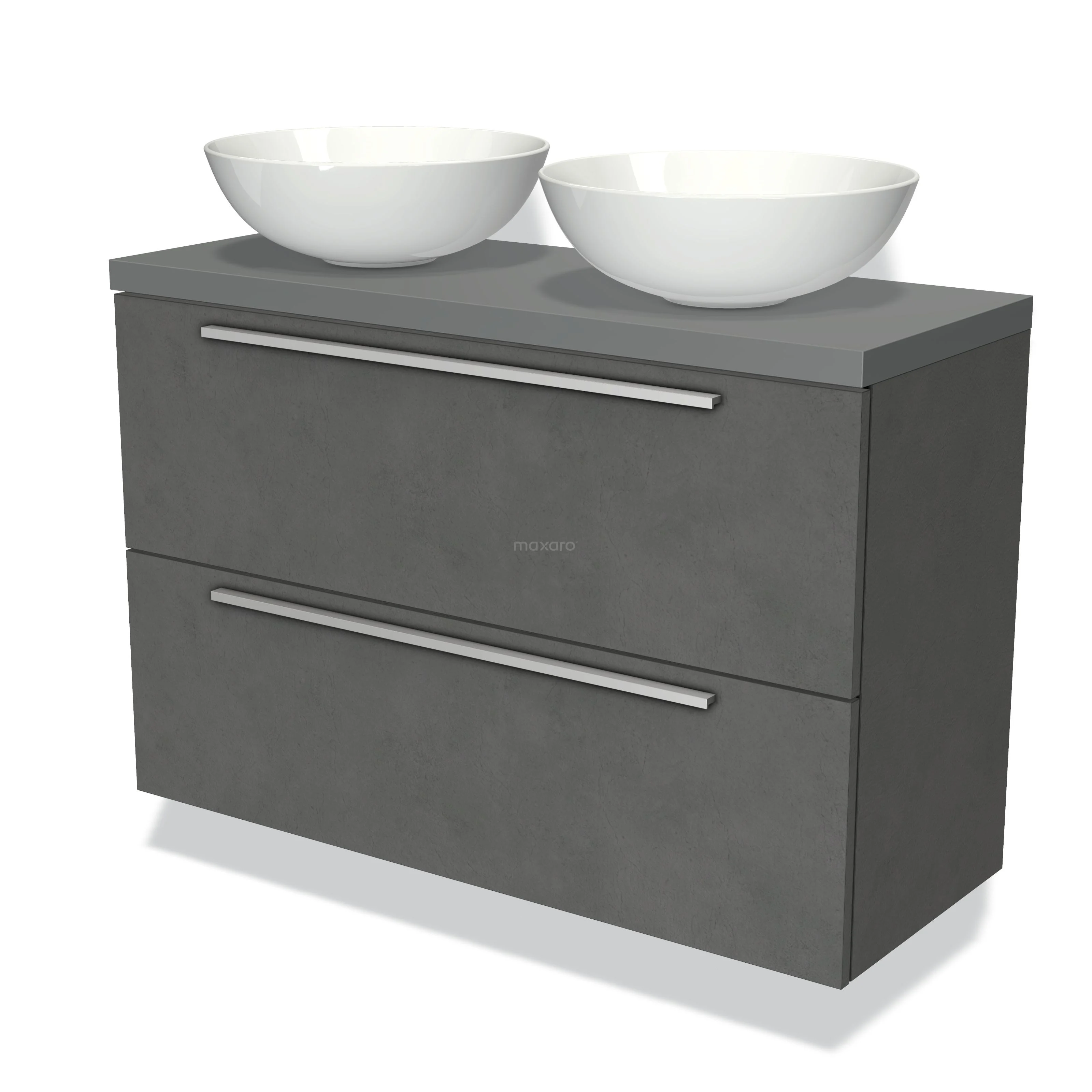 Badmöbel mit Konsole 100cm Modulo Plato Slim Dunkelgrau Beton 2 Schubladen Flach