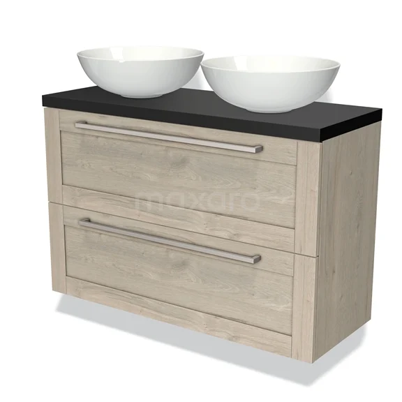 Badmöbel mit Konsole 100cm Modulo Plato Slim hellgraue Eiche 2 Schubladen Rahmen