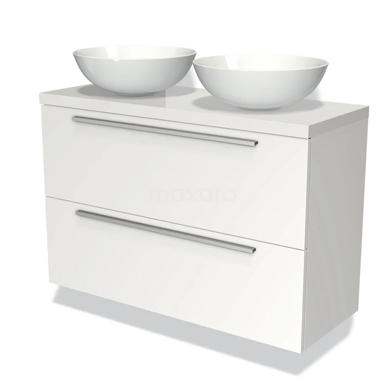 Badmöbel mit Konsole 100cm Modulo Plato Slim Matt Weiß 2 Schubladen Flach
