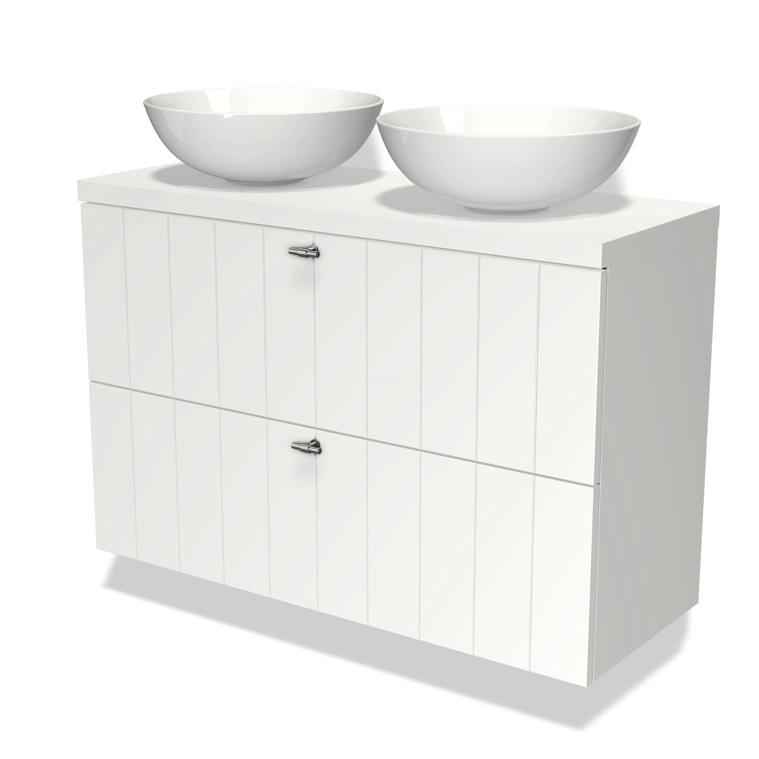 Badmöbel mit Konsole 100cm Modulo Plato Slim Matt Weiß 2 Schubladen Laminat